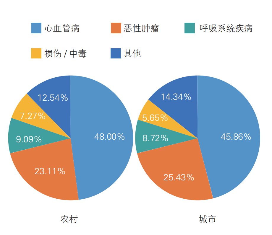 2020 年中国城乡居民主要疾病死因构成比